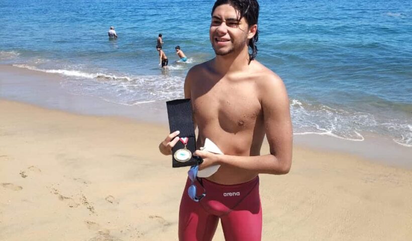 “Tommy” Villarroel, nadador atacameño de 16 años, completa la Corona Océano y entra al selecto grupo que finalizó la Triple Corona de Chile.