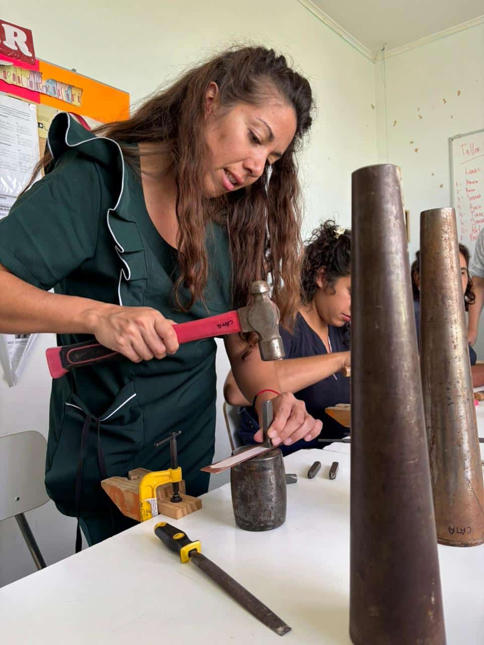 Durante tres jornadas, se desarrollaron talleres de trabajo en cuero, elaboración de joyería en cobre y bronce, y construcción de instrumentos musicales a partir de elementos naturales, integrando además el sello educativo del establecimiento, enfocado en el respeto por el entorno, el reciclaje y la reutilización.