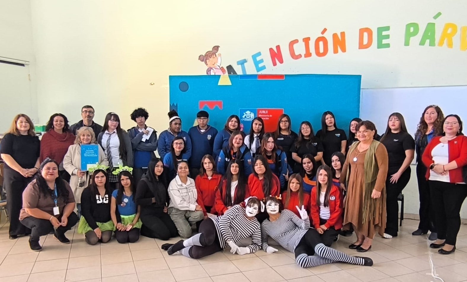 Uno de los momentos más llamativos de la jornada fue la presentación artística de un dúo de mimos del Jardín Infantil “Piolín”, quienes, a través del lenguaje corporal, transmitieron un potente mensaje sobre la importancia de la conciencia ambiental.