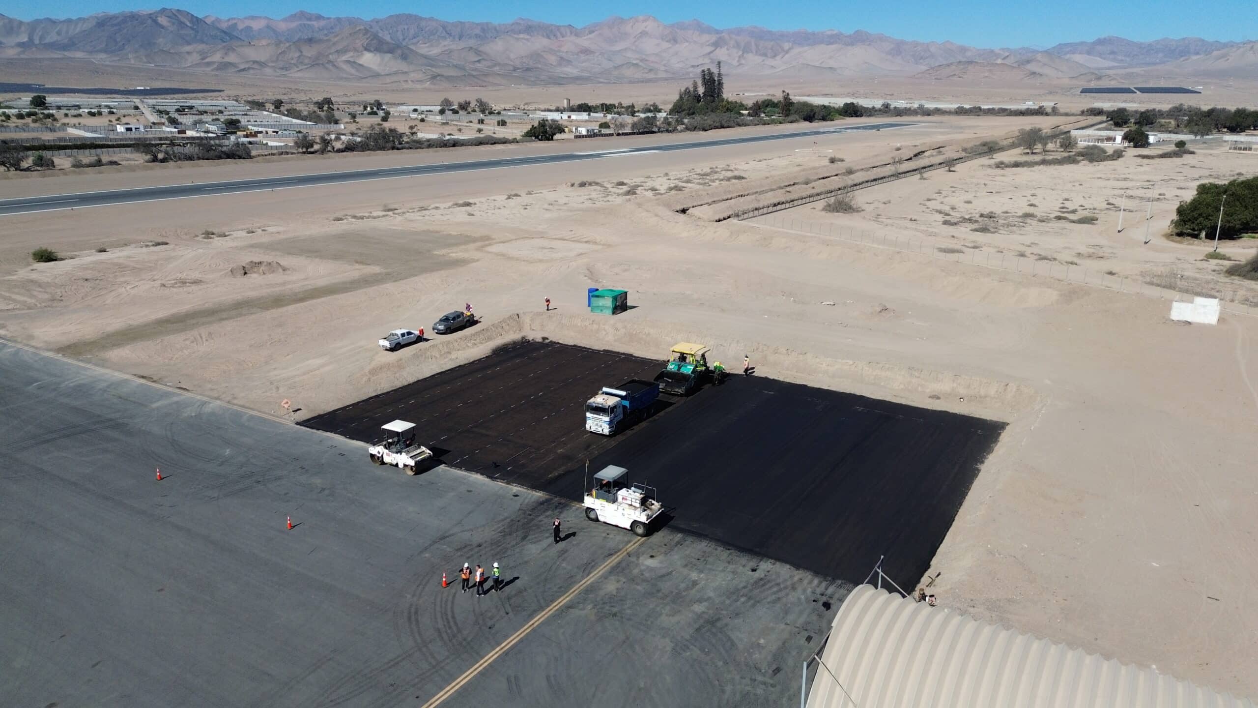 Paralelamente, se desarrolla la pavimentación del punto de posada para el helicóptero institucional de Carabineros de Chile, el primero con base en la región, marcando un hito en la infraestructura de apoyo aéreo regional.