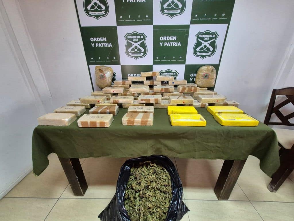 En coordinación con la Fiscalía SACFI Atacama, se procedió al pesaje y análisis de las sustancias, arrojando como resultado la presencia de 10 kilos 860 gramos de marihuana, 53 kilos 822 gramos de pasta base de cocaína y 4 kilos 164 gramos de Clorhidrato de cocaína.