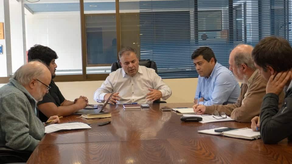 El alcalde Genaro Briceño Tapia, junto al director de Desarrollo Comunitario, Oscar Tapia, el abogado municipal Alex Álvarez y representantes de la empresa Transelec, sostuvieron una reunión de trabajo para analizar la situación de viviendas que se han instalado en campamentos ubicados bajo líneas de transmisión eléctrica y torres de alta tensión.