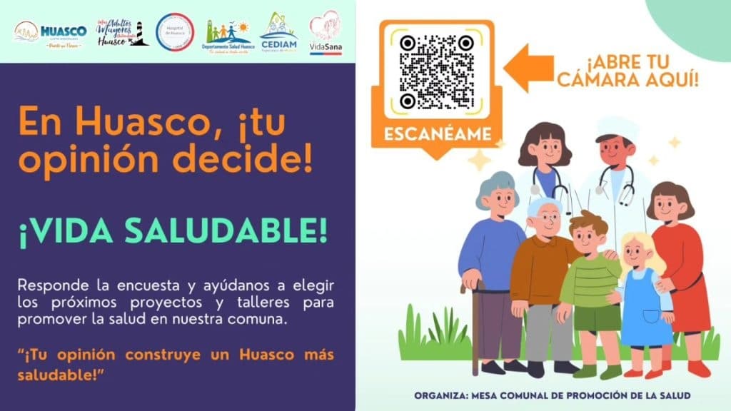 El Departamento de Salud de la Ilustre Municipalidad de Huasco, a través de la Mesa Comunal de Promoción de la Salud, invita a la comunidad a participar en la Campaña de Planificación Participativa en Promoción de la Salud, desarrollada en el marco del Programa de Promoción de la Salud del Ministerio de Salud.